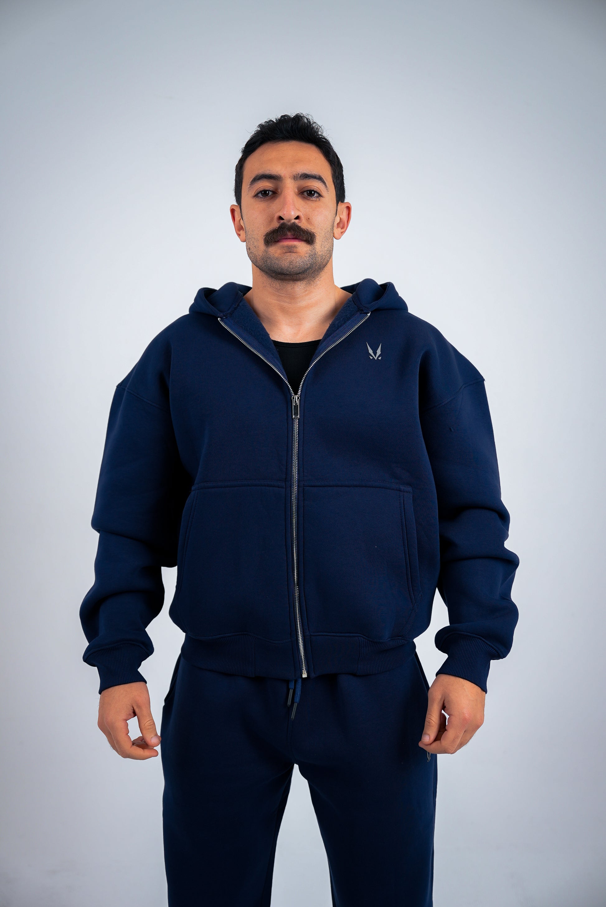 Layers for lifters. Easy on, easy off — from warm-up to cool-down to everywhere after. Silver zipper, oversized cut.